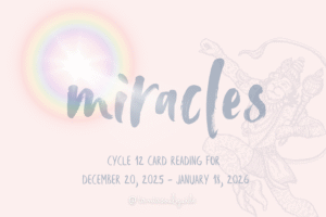 Monthly Oracle Card Reading: December 20, 2025 to January 18, 2026 "The miracle isn't that I finished. The miracle is that I had the courage to start." ~ John Bingham KEYWORD FOR ... Read more