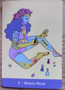 The sacred self-care card for this lunar cycle is “Beauty Ritual”. When we stop seeking for validation, approval, worth, and love outside of ourselves, we begin to live as the beautiful beings we truly are — inside and out. This card invites you to express your own beauty in a sacred, intentional way.