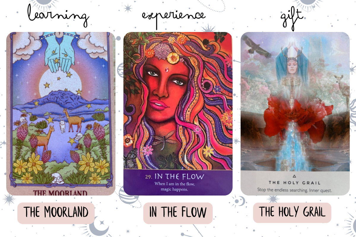 This three-card reading reveals the energy unfolding in this lunar cycle. Together, they show the bigger picture and theme for this period — how we are learning to “lean in” to deeper trust and faith.